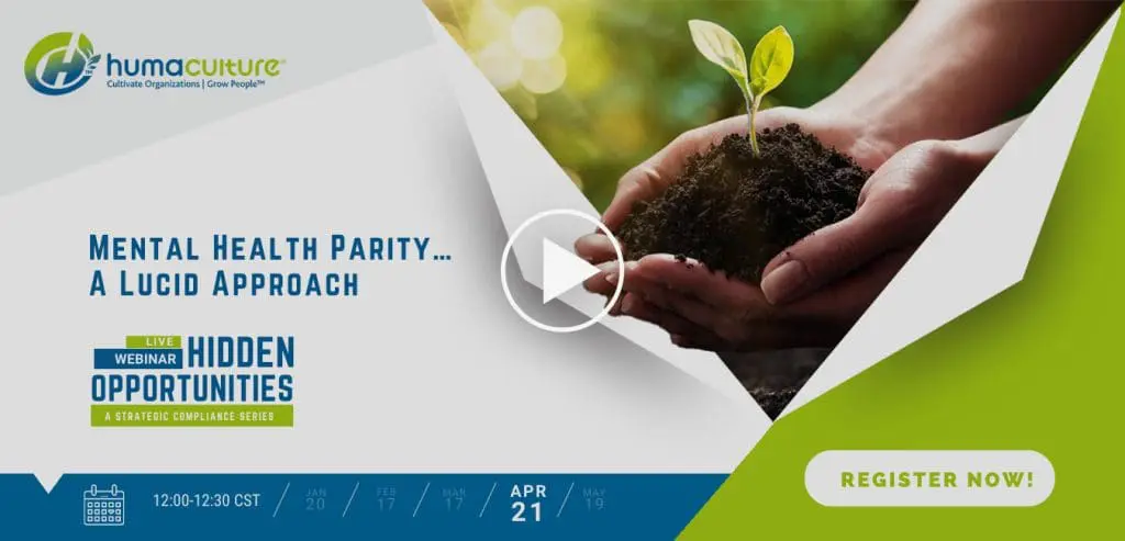 Join us on Thursday, April 21 from 12:00 to 12:30 CST for the fourth webinar in Humaculture, Inc.’s Hidden Opportunities, Strategic Compliance Series, to learn why mental health issues, costs, and administration continue to increase despite Mental Health Parity efforts and how to effectively respond.