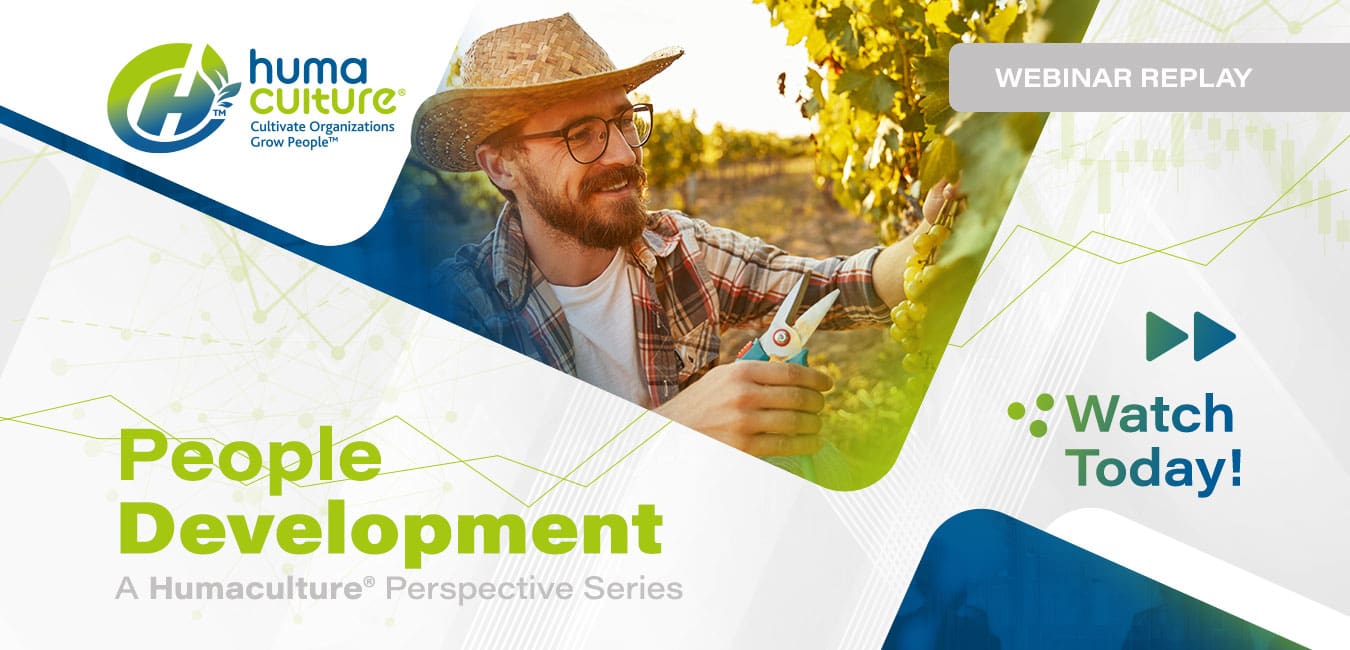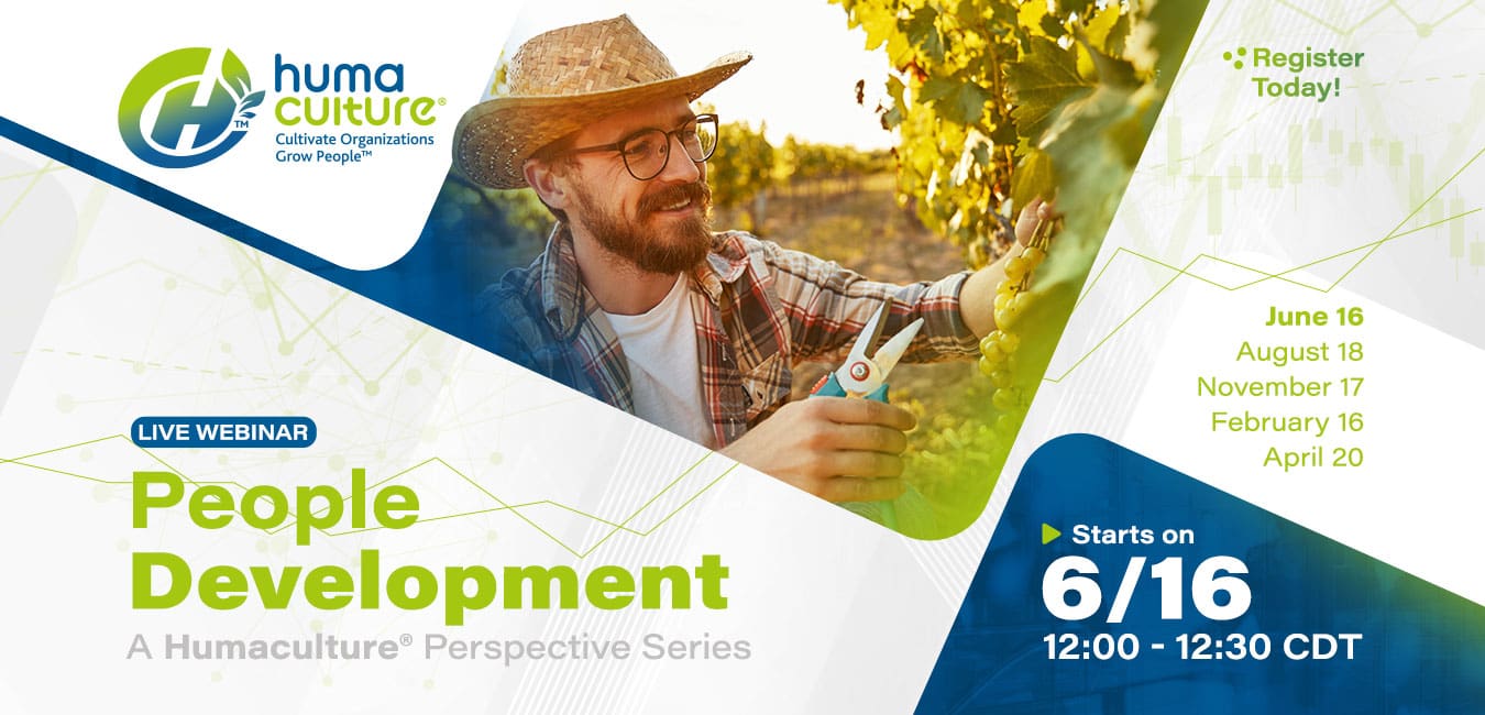 Please join us on the third Thursday of the month over the next six months for our upcoming People Development series. This series will focus on how to shape talent for success by “pruning the vines” as necessary. We will cover people development from the Humaculture® perspective.