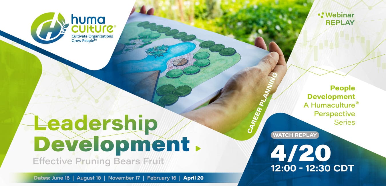 Watch a replay of the fifth webinar in Humaculture, Inc.’s “People Development: A Humaculture® Perspective Series” to learn how to conduct Career Planning to support leadership development, and why “Effective Pruning Bears Fruit” by building leadership capabilities.