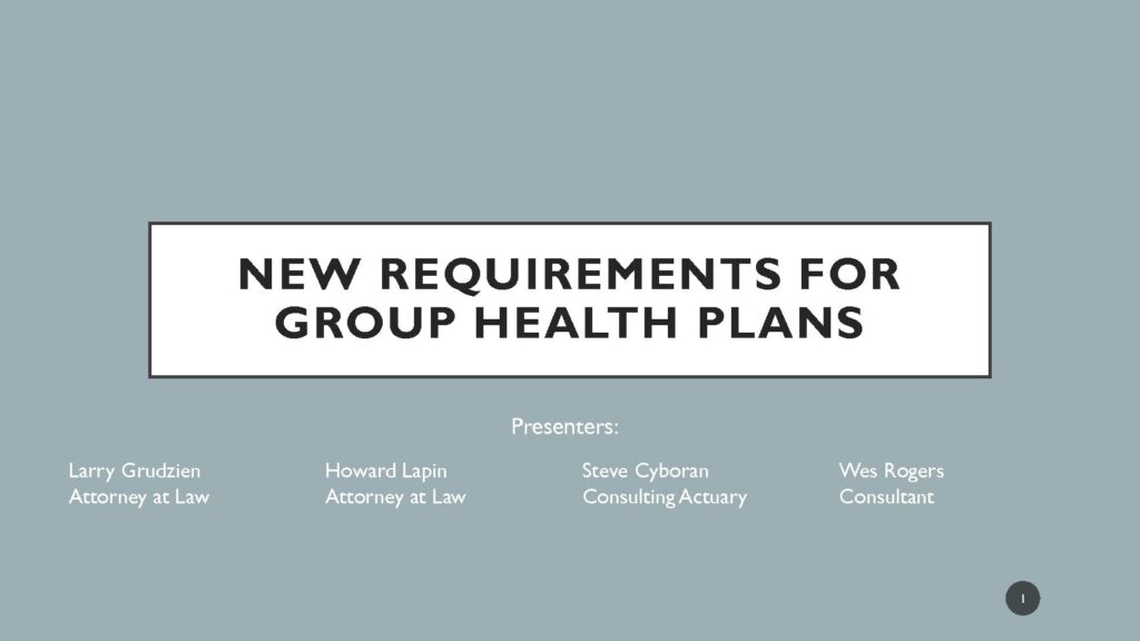 A replay of and presentation deck for our July 20 Webinar is now available. This webinar addresses several new laws and regulations that significantly impact group health plans and individual insurance coverage. The Consolidated Appropriations Act (CAA), signed into law December 27, 2020, contained the No Surprises Act (NSA) and rules for the additional analysis required for Mental Health Parity (MHP). In addition, the Departments of Labor (DOL), Health and Human Services (HHS), and the Treasury (collectively, the Agencies) issued final “Transparency in Coverage” regulations requiring certain disclosures for group health plans and individual insurance.