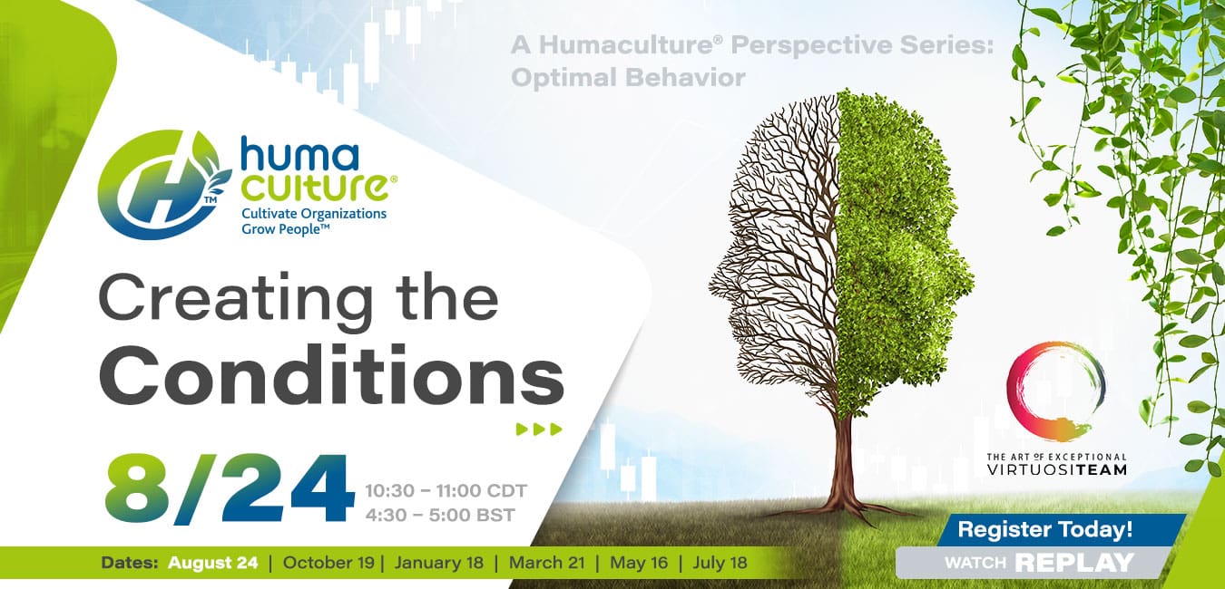 Watch a replay of the first webinar in Humaculture, Inc.’s “Optimal Behavior: Making Optimal Behavior the Natural Choice” to learn why organizations don’t effectively execute change and be introduced to some of the concepts that facilitate optimal behaviors to support a high-performing culture.